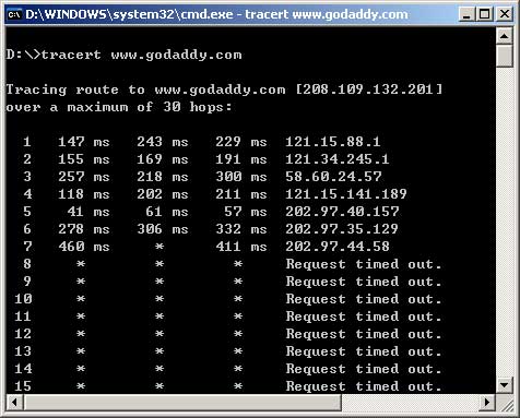 A screen copy of the command tracert shows that the problem is a router inside China Telecom.